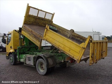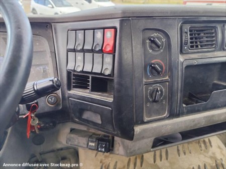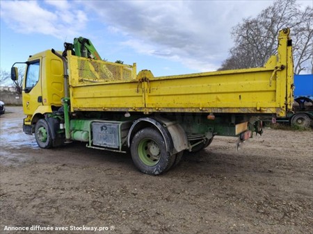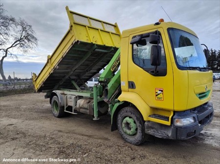 VENTE A L'EXPORT OU PROFESSIONNEL RENAULT MIDLUM 180 DU 28/08/2002 287000 KMS BENNE ARRIERE BASCULANTE AVEC 4 RIDELLES MANUELLES LONGUEUR INTERIEUR 4M20 / LARGEUR INTERIEUR 2M35 / HAUTEUR RIDELLE 0.47 M GRUE PALFINGER PK 7501 AVEC 1 ALLONGE CROCHET EMPATTEMENT 3M70 BOITE MECANIQUE 6 VITESSES 3 PLACES SUSPENSION MECANIQUE GYROPHARE COFFRE ECHAPPEMENT VERTICAL PNEUS 285/70R19.5