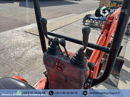 Référence : 250140 Marque / Modèle : KUBOTA U10-3 Année : 2012 Heures : 2 152 h Type : Mini pelle Puissance : 250 kW Poids : 1.045 t Équipements : Attache rapide mecanique 3 godets Ligne BRH Châssis à voie variable Prix de vente hors taxes. Livraison possible en supplément. Plus d’informations et photos disponibles sur notre site internet. Prenez rendez-vous pour une visite dans les meilleures conditions. Notre société est spécialisée dans l’achat et la vente de matériels professionnels, avec possibilité de reprise rapide sur simple expertise et règlement immédiat. Nous vous accueillons dans nos locaux situés au : 17 Route d’Eschau, 67400 ILLKIRCH-GRAFFENSTADEN Nous disposons d’un parc matériel de plus de 100 000 m² au sud de Strasbourg et d’un atelier entièrement équipé. Plus de 350 références en stock : engins de chantier, manutention, agricole, poids lourds, VU et VP. Stock renouvelé chaque mois. *Descriptif sous réserve d’erreur.
