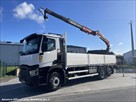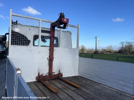 Carrosserie: Plateau Grue 6.60 x 2.48 Plancher omega 3 ridelles Alu / Côtés Grue Fassi F.135 Portée 8m - 1T490 Radio commandes Béquilles hydraulique Rotator - Fourche à palettes Essieux: 6x2 Releveur et directionnel