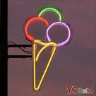 Dimensions de l'enseigne lumineuse en forme de cornet de glace : 47 cm x H 85 cm, poids : 18 kg.