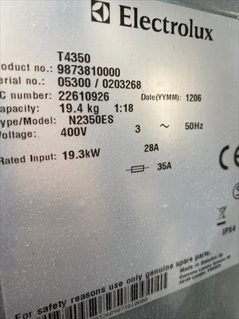 sèche-linge T4350E - capacité 19 kgs - Branchement électrique triphasé - date d'achat 06/2012 - vente suite à cessation d'activité - prix HT