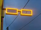 Enseigne drapeau à leds, faible consommation, très voyante avec ses leds de qualité, fabrication Winlight. Dimensions 80cm x 20cm, bras de fixation télescopique +-15cm, vendue avec transformateur étanche et coupe circuit extérieur.Très peu utilisée, état proche du neuf.