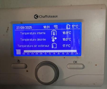 Chaudière murale gaz Chaffoteaux & Maury type MIRA C GREEN 35FF, achetée en octobre 2020 à condensation, à micro-accumulation, avec régulateur en fonction de la température extérieurs, débit eau chaude sanitaire 17,1 l/mnEfficacité énergétique ETAF 94 a +