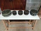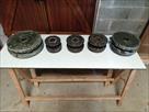 Ensemble comprenant 4 plateaux à tenonner, 2 plates bandes et 3 fraises de profilages.