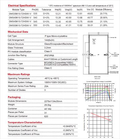 Panneaux solaires – DMGEC (neufs sous emballage)Modèles disponibles : DM550M10-72HSW-V
