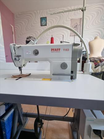 Machine a coudre industrielle PFAFF 1183 avec plateau sur bâti et accessoires porte cône et tiroir .Piqueuse plate 1aiguille