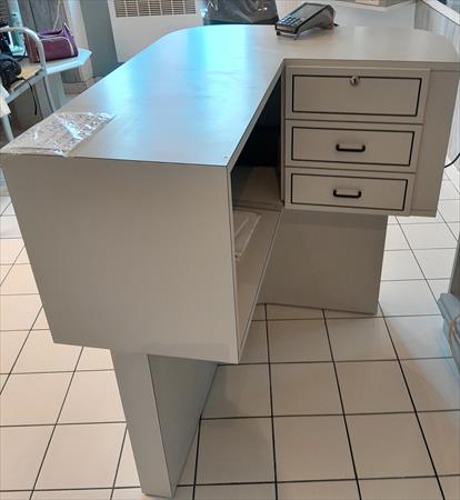 URGENT cause retraite vend 1 comptoir de caisse en angle gris clair 3 tiroirs dont 1 avec fermeture à clé