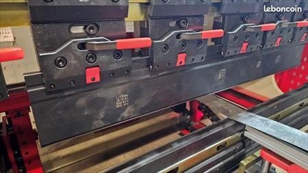 Presse plieuse hydraulique 2000X70 Neuve Avec CNC 4 AXES + 1 AXE Bombage - DELEM DA 53T Touch / Graphique - Y1, Y2, X, R - Z 2 butées motorisées Composants : Schneider, Inovance, Estun ED3L DISPONIBLE SUR SITE IMMEDIATEMENT , EN FONCTION Caractéristiques techniques Presse plieuse hydraulique 2000 × 70T – 4 axes + Bombage Capacité de pliage (force) : 70 Tonnes Longueur de pliage utile : 2000 mm Course du coulisseau (ram stroke) : 160 mm Ouverture entre table et coulisseau (Daylight) : 370 mm Profondeur de col de cygne (gorge) : 325 mm Hauteur de table : env. 880 mm Vitesse de descente rapide : ~ 120 mm/s Vitesse de travail (pliage) : ~ 10 mm/s Vitesse de remontée : ~ 100 mm/s Précision de positionnement :: ± 0,01 mm Moteur principal : ~ 5,5 kW Poids net : environ 4 500 kg Dimensions hors tout : Longueur : ~ 2 500 mm Profondeur : ~ 1 600 mm Hauteur : ~ 2 400 mm Commande numérique – Delem DA-53T Écran tactile couleur 10,1″ haute résolution Programmation intuitive des pièces, matériaux, outils Contrôle simultané jusqu’à 4 axes Bibliothèques intégrées (outils, matériaux, produits) Port USB pour sauvegarde/restauration programmes Axes CNC (contrôlés par la DA-53T) Y1 – Y2 : axes verticaux (coulisseau gauche et droit, synchronisés par vannes proportionnelles) X : butée arrière avant/arrière (vis à billes + servomoteur) R : butée arrière montée/descente (hauteur réglable par CNC) Crowning (bombage) : contrôle automatique Avec outillages Amada / Promecam Fractionnés 2 Vé 8 et 12 1:835 / 1:330 / 1:300 / 2:100 / G 1:40 /1:50 / 1/15 / 1:20 / 1:10 Matrices 1:835 / 1:335 / 1:200 /1:15 / 1:20 / 1:10 / 1:40 /1:50 /1:100 Poinçons 86° : 1 Matrice auto centrée Graduation sur table matrice pour Axes Z Avec Huile 100l