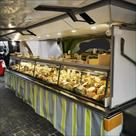1ère mise en circulation 2011, double essieux au milieu. Remorque pouvant être dirigée pour faciliter les déplacements à l'aide d'un moteur. 6m avec flèche. - vitrine de 4m70 avec plaques inox amovibles sur 2 niveaux, environ 40cm chacun, avec évaporateur et froid ventilé à débit réglable. - vitrine pouvant s'ouvrir devant pour faciliter le nettoyage et l'installation. -la partie vente, côté vendeur est fermée par des plexiglas permettant de garder le froid. - 2 coffres de réserves sous la vitrine, avec réglage indépendant du froid. -rangements sur la partie haute sur toute la surface de la vitrine. -éclairage par spots au plafond et néons pour la vitrine -table d'1m rabattable sur la flèche. - bâches d'angles neuves des 2 côtés, vertes et grises à rayures. - avec roue de secours.