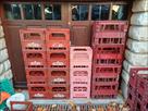 Plusieurs casiers à bouteilles en plastique très résistants et empilables, utilisés par les professionnels (3 evian, 8 cfp et 39 ami).