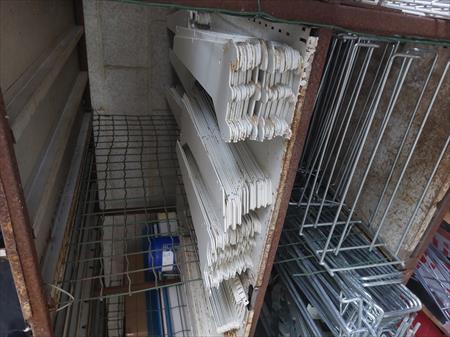 Lot d'étagère Tegometall comprenant pieds + plaques de dos, plaques de fonds, plaques support, crochets de plaques, crochets pour articles et beaucoup d'autres accessoires environ 70m linéaire disponible. Nous vendons un minimum de 8m linéaire comprenant 9 piquets + pieds + 36 plaques de dos + 8 plaques de fonds + 4 plaques supports et/ou panier + 8 crochets support de plaques + 120 crochets d'articles + accessoires divers aux choix. L'ensemble peut également être vendu un seul lot complet avec prix spécial