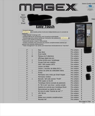 Double distributeur Magex installé en mars 2022 par Interconfort. Entièrement automatisé via application : insertion prix et produits, gestion stocks, recettes, contrôle température,…paiement par carte, ouverture frontale et par derrière, gris anthracite, sticker autocollant changeable pour l enseigne, installé à Mouscron dans le Hainaut, Belgique a 5kms de la frontière française