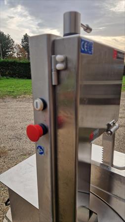 Vends scie à os d'occasion de marque MEDOC ST200 EN 380V, avec 3 lames neuves. Scie de construction en acier inoxydable 18/10. · Grande robustesse et fiabilité de la machine. · Système tendeur de lame de procédure automatique. · Facilité de nettoyage à jet d’eau. · Démontage des racleurs sans outils. · Indice de protection IP65. · Conforme à la Directive 2006/42/CE. capacité de coupe 180x175mm, ø poulie 200mm, en inox AISI 304, table fixe articulée Prix net : Pas de TVA: 880 euros avec facture. ( valeur en neuf 2346 euros)