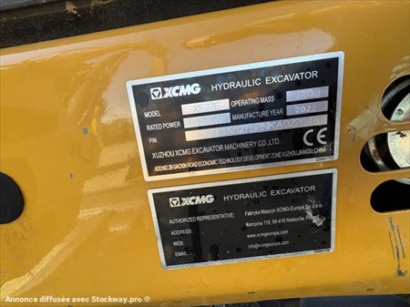 Bonjour, À VENDRE : MINI PELLE XCMG XE 27 E Caractéristiques :