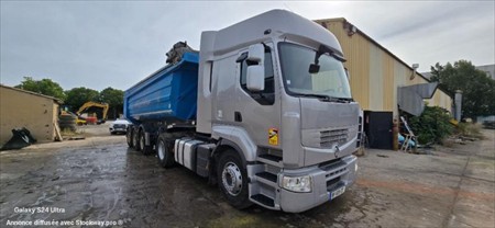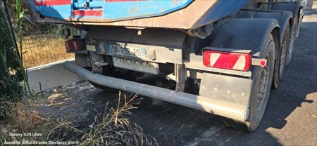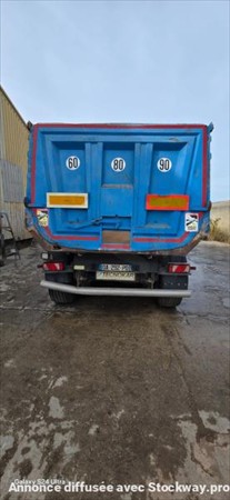 benne acier porte arrière hydraulique simple fonction un essieu relevable bâche électrique pneus bons 6 jantes alu mines validitées 04/09/2026 peut-être vendu avec tracteur RENAULT PREMIUM 460 de 12/2010 520000 kms avec hydraulique et intarder