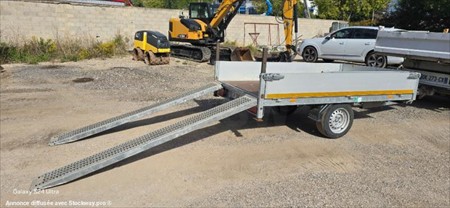 PV. 0.363 T PTC. 1.800 T CU. 1.437 T VITESSE MAXI 140 KM/H LONGUEUR DE CHARGEMENT 2.565 M PNEUS 195/50R13 2 RAMPES EN ALU SOUS LE CHASSIS REMORQUE EN BON ETAT AVEC ROUE DE SECOURS
