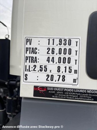 Boite automatique, climatisation, bras Palfinger 20T coulissant, DFR + crochet, empattement 3m90, BAE hydraulique, caméra de recul, blocage de différentiel.
