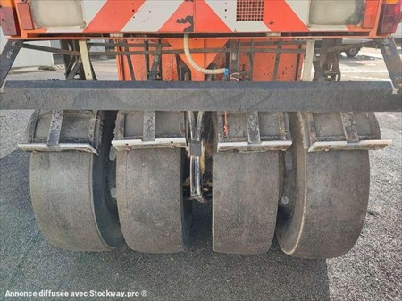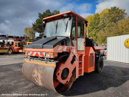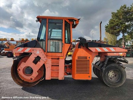 Ce compacteur bille et pneus de la marque Dynapac est le modèle CC 422C de 2004. Longueur : 4 M 95 Largeur : 1 M 81 Hauteur : 2 M 97 Poids : 9850 Kg Barre de nettoyage avant et arrière. Ventilation Fréquence mini/maxi 49 Hz Vitesse max 11 Km/h Moteur cummins 4BTA3.9 de 93 kW (126 ch) Ce compacteur possède +/- 7.264 heures d'utilisations.