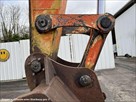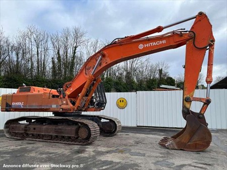 Cette pelle de démolition de la marque Hitachi est le modèle EX400LC de 1990. Longueur : 12 M Largeur : 3 M 64 Hauteur : 3 M 45 Poids : 45.586 kg Chenilles : 750 MM Bras de démolition en trois parties. Protection cabine. Dimensions bras terrassement : fléche de 7 M et balancier de 3 M 35 Dimensions bras de démolition : 21 m 50 12800 heures