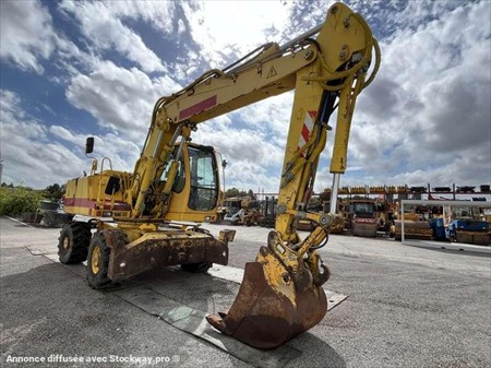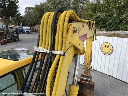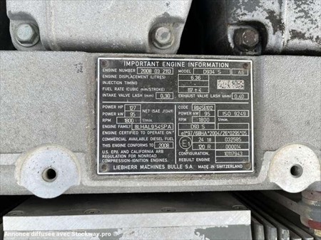 Cette pelle sur pneus de la marque Liebherr est le modèle A900 C Litronic de 2008. Longueur : 8 M 70 Largeur : 2 M 60 Hauteur : 3 M 20 Poids :e 17700 kg. Taille pneus : 445/70 R 19.5 Flèche à volée variable Clapets de sécurité Lignes hydraulique supplémentaires Attache hydraulique Liebherr SW48 Graissage centralisé automatique 2 stabilisateurs Climatisation Moteur Liebherr D934 S développe 95 kW (127 ch) 18174 Heures