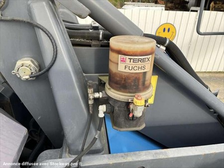 Cette pelle industrie de la marque Fuchs est le modèle MHL 350 de 2016. Largeur : 3 M 46 Hauteur : 4 M 02 Poids : 37800 kg. Taille pneus : 650/65 R 25 Longueur flèche : 9 M 10 Longueur balancier : 5 M 35 Clapets de sécurité Protections de vérins Protections cabine Caméra de recul Graissage centralisé automatique Cabine élévatrice 4 stabilisateurs Crochet d'attelage Pommier Climatisation Moteur Deutz TCD 6.1 L6 de 215 chevaux. 1854 Heures