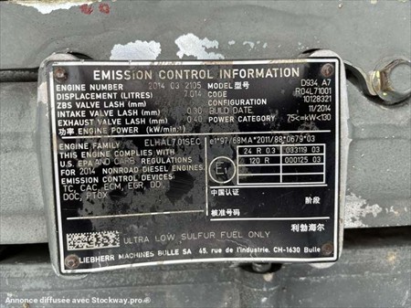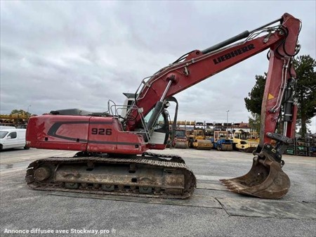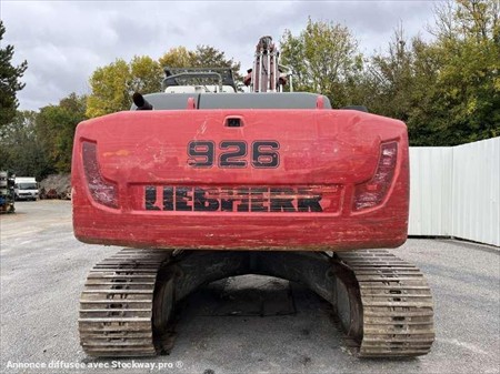 Cette pelle sur chenilles de la marque Liebherr est le modèle R926 LC de 2016. Longueur : 9 M 40 Largeur : 2 M 38 Hauteur : 3 M 07 Poids : 27.800 kg. Flèche monobloc Clapets de sécurité Graissage automatique Attache rapide Protections de vérins Protection de cabine intégrale Caméra de recul Lignes hydrauliques supplémentaires Climatisation Moteur Liebherr D934 A7 de 120 kW (163 ch) 9000 heures