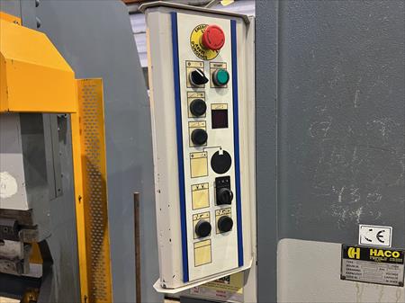 Section verticale Longueur de coupe : 3 050 mm Épaisseur de coupe maximale : 12 mm acier Épaisseur de coupe dans l'acier inoxydable : 8 mm Angle de coupe variable Angle réglable de 0,5 à 3° Butée arrière motorisé Réglage manuel fin de course (niveau millimétrique) Nombre de coups par minute : 7 à 14U 18 presse tôle Table à billes pour un meilleur glissement de la tôle Norme CE
