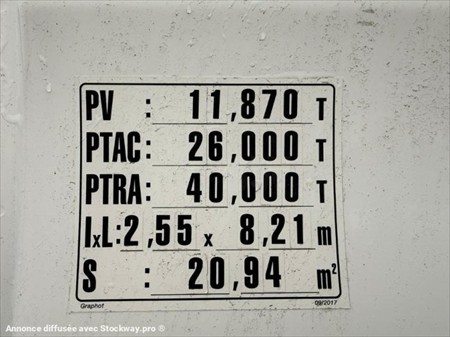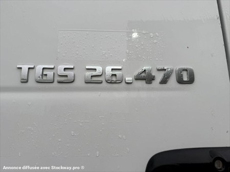 MAN TGS 26.470 6x4 polybenne Palfinger 1ère M.E.C : 30/03/2021 Kilométrage : 257 137km Motorisation : 470ch Euro 6 - Adblue Boîte de vitesse : automatique Essieux : 6x4 Suspension Av/Ar meca Pneus : Av - Ar : 315/80R22.5 PV : 11.870T PTAC : 26T PTRA : 40T l x L : 2.55x 8.21m Empattement 1 à 2 : 3.90m Equipements : Bras polybenne Palfinger Pour benne jusqu'a : 6.40m Potence coulissante Crochets de verrouillage sur l'arrière BAE escamotable hydraulique Vérins anti-cabrage Remorquant crochet Rockinger Cabine courte : 2 places assises Autoradio bluetooth Commande au volant Climatisation Aide au démarrage en côte Blocage de différentiel Toit ouvrant Vitres et rétroviseurs électrique