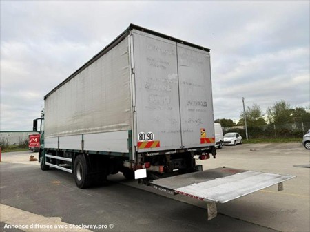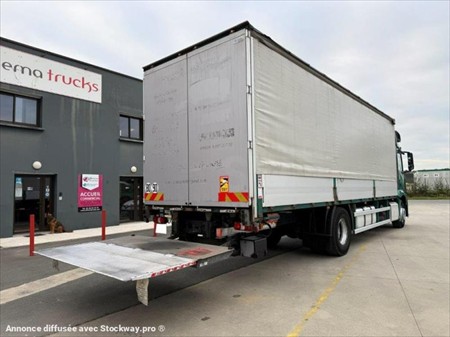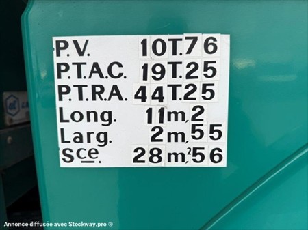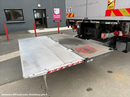 MERCEDES ACTROS 1840 4x2 PLSC + HAYON 1 ère M.E.C : 30/06/2015 Kilométrage : 719 376km Motorisation : 400ch Norme : Euro 6 Boîte de vitesse : automatique Essieux : 4x2 Suspension : pneumatique AV et AR Pneumatiques : 315/80R22.5 PV : 10T76 PTAC : 19T25 PTRA : 44T25 l x L : 2.55 x 11m Empattement essieu 1 à 2 : 6.10m Ralentisseur Equipements : Caisse savoyarde LIBNER Dimensions utiles : 8.45m x 2.47m x H : 2.55m 3 ridelles par côté 2 portes arrière Hayon DHOLLANDIA rétractable : 1500kg Cabine : courte 2 places assises Autoradio CD / Tel Commande au volant GPS Fleetboard Climatisation Tachygraphe numérique Régulateur de vitesse Aide au démarrage en côte Vitre électrique Toit ouvrant