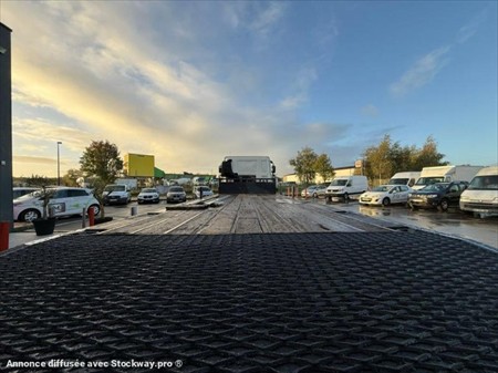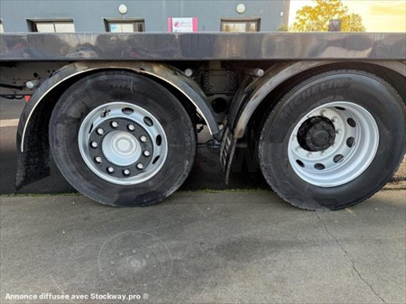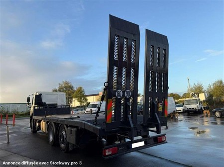 DAF CF 370 6x2 Porte matériels 1ère M.E.C : 25/04/2018 Kilométrage : 262 651km Motorisation : 370ch - Euro 6 Boîte de vitesse : automatique Essieux : 6x2 Suspension : pneumatique intégral 3ème essieu relevable et directionnel PV : 11.460T PTAC : 26T PTRA : 29.500T l x L : 2.54 x 10.75m S : 27.31m2 Pneus : 315/70R22.5 Equipements : Plateau porte matériel : plancher bois omega 2 x Rampe arrière : 2.70m Longueur utile : 8.55m Anneaux d'arrimage Treuil hydraulique sous plancher 2 x gyrophares 2 x coffre pvc Cabine : 2 places assises Autoradio Bluetooth / USB / Aux Climatisation Régulateur de vitesse adaptatif Alerte franchissement de ligne Toit ouvrant Blocage de différentiel Aide au démarrage en côte