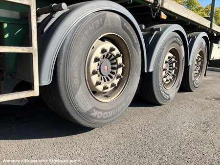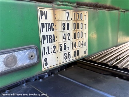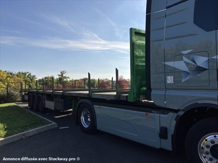 Remorque LECTRAILER plateau renforcé. Premier essieu releveur. Il est possible de démonter les ranchers porte fer pour faire un plateau droit. plancher en très bon état comme le reste. Longueur utile de plancher : 13.60 mètres. Véhicule vendu repassé aux mines. Matériel visible sur rendez-vous à laval 53.