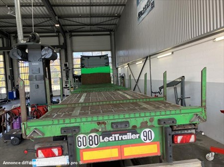 Remorque LECTRAILER plateau renforcé. Premier essieu releveur. Il est possible de démonter les ranchers porte fer pour faire un plateau droit. plancher en très bon état comme le reste. Longueur utile de plancher : 13.60 mètres. Véhicule vendu repassé aux mines. Matériel visible sur rendez-vous à laval 53.