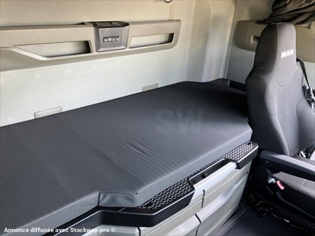 MAN TGX 18.480 LL CABINE GX Mise en circulation: 21/12/2023 Moteur 13 Litres 480 CV Kilométrage : 181 419 kms Equipements: Suspension intégrale air, jantes alu, carénage et déflecteurs tridimensionnels, feux avant et arrières leds, calandre chromé, casquette individual S, allumage des feux et essuie glace automatiques, controle de la charge à l'essieu, Siège passager vario avec table rétractable dans tableau de bord, commande vitres et toit ouvrant au niveau des couchettes, clim auto et de nuit, prise 220 volts, frigo, Smart select, GPS 7 pouces, informatique embarqué RIO, radio avec subwoofer. Véhicule vendu révisé et garantie MAN complet 350 000 Kms où 21/12/2026 et chaine cinématique 450 000 Kms où 21/12/2026. Pose d'une prise Hayon.