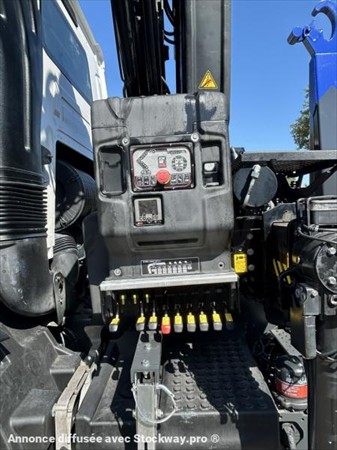 Véhicule équipé, boite AUTO, clim, blocage pont et inter-ponts, bras neuf JI14000, Grue hiab 188 ES4 HIDUO 4 extensions lèvent 1T050 A 12M40 5eme et 6eme fonction à radiocommande. Véhicule entièrement révisé et garantie 3 mois sur la chaine cinématique.