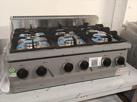 Cuisinière professionnelle 6 feux à gaz, idéale pour les cuisines exigeantes. Puissance, robustesse et cuisson maîtrisée pour tous vos plats.