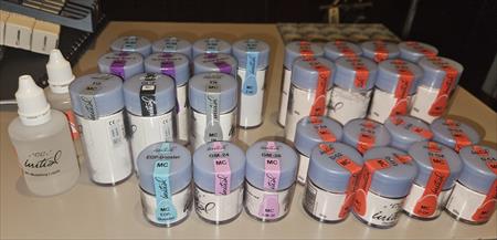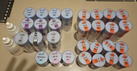 Lot complet de céramique dentaire GC Initial MC pour restaurations métal-céramique. Produits neufs scellés ou comme neufs.