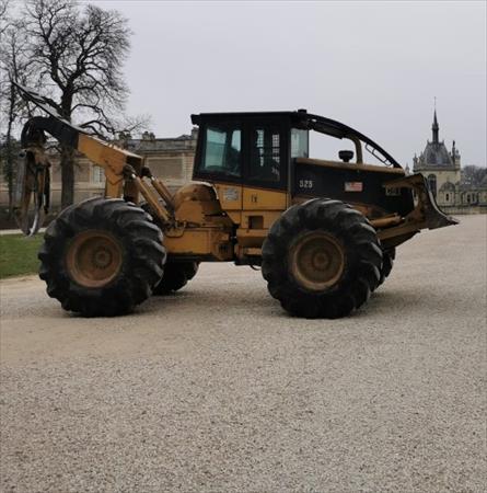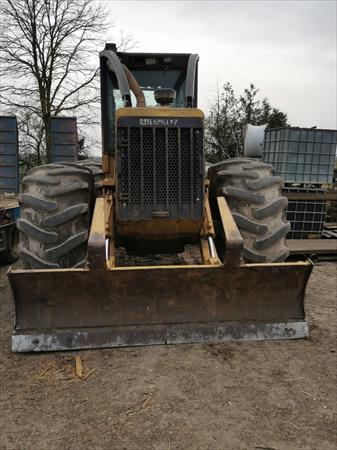 débusqueur Caterpillar 525, moteur neuf 800h, boite de transmission 2500h, huile hydraulique bio, simple arche, pince, treuil 40T, pneus 30.5/32 50% usure.