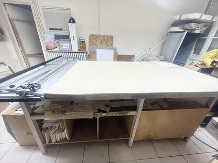 Cause réinstallation différente en surface, vends Établi d’atelier d’encadreur en BOIS avec rangements , démontable pour enlèvement .Dim: 2,50m x 1,25m.