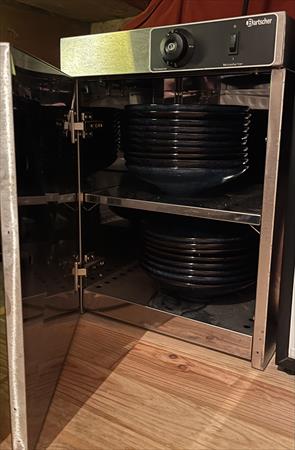 Chauffe assiettes électrique, en acier inoxydable, avec une étagère pour 30 assiettes de diamètre 320 mm.