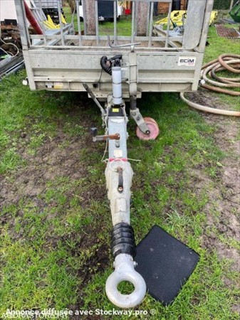 PORTE ENGIN ECIM ATTELAGE TRAPEZOIDAL AVEC MOLETTE RAMPES EQUIPEE DE BEQUILLES CHARGE UTILE 2700KG EQUIPE PORTE OUTILS AVANT ATTELAGE ANNEAU ELECTRICITE OK