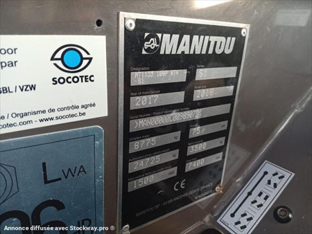 Manitou MT1135 Numéro de stock : 7886 Marque : Manitou Modèle : MT1135 Année : 2017 Heures : 1655H Numéro de série : 989079 Poids : 8800kg Capacité de levage : 3.5T Hauteur : 2m42 Largeur : 2m28 Longueur : 5m37 Hauteur de levage : 11m Pneus avant : 400/80-25 Pneus arrière : 400/80-25 Usure pneus avant : 50% Usure pneus arrière : 50% Roues motrices : 4RM Moteur : Deutz 4 cylindres 75CV Accessoires : - Fourche à palette - Ligne auxiliaire - Monolevier - Correcteurs de devers Tarif vendu dans l’état : 52 000€ H.T (TVA à 20% récupérable pour les professionnels) Possibilité de matériel vendu révisé, vidangé et garantie pour un supplément de 3000€ HT. Nous sommes une entreprise multimarques spécialisée dans le négoce de matériels TP et Agricoles dans les Deux-Sèvres. Une large gamme de produits est disponible sur notre parc : Mini pelle, chariot télescopique, dumper, remorques et autres matériels divers. Nous pouvons assurer des livraisons dans toute la France.
