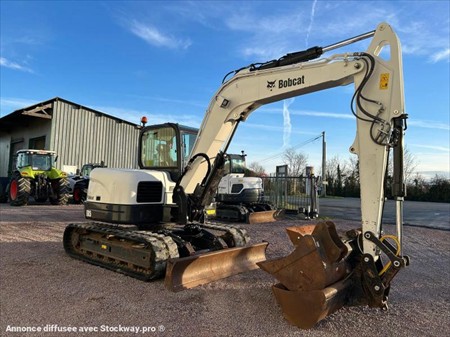 Bobcat E85 Numéro de stock : 7846 Marque : Bobcat Modèle : E85 Année : 2020 Heures : 1852h Numéro de série : B34S14836 Poids : 8.54T Hauteur : 2m64 Largeur : 2m30 Longueur : 6m16 Chenilles : Caoutchouc Usure chenille droite : 70% Usure chenille gauche : 70% Nombre de godets : 3 2 Vitesses : Oui Moteur : Yanmar 4 cylindres Accessoires : - Double ligne hydraulique - Attache rapide hydraulique - Climatisation - Caméra de recul Tarif vendu dans l’état : 44 000€ H.T (TVA à 20% récupérable pour les professionnels) Possibilité de matériel vendu révisé, vidangé et garantie pour un supplément de 3 000€ HT. Nous sommes une entreprise multimarques spécialisée dans le négoce de matériels TP et Agricoles dans les Deux-Sèvres. Une large gamme de produits est disponible sur notre parc : Mini pelle, chariot télescopique, dumper, remorques et autres matériels divers. Nous pouvons assurer des livraisons dans toute la France.