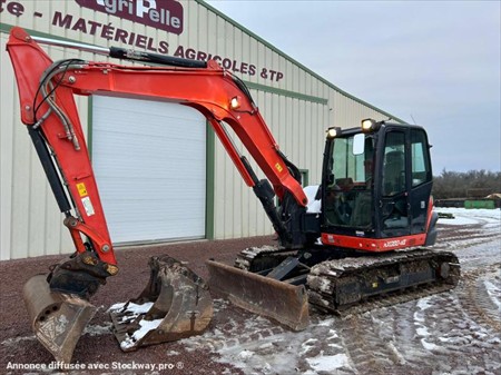 Kubota KX080-4 Numéro de stock : 7862 Marque : Kubota Modèle : KX080-4 Année : 2019 Heures : 3222h Numéro de série : JKUK0804A01H46245 Poids : 8190kg Hauteur : 2m54 Largeur : 2m20 Longueur : 6m45 Chenilles : Féraille Usure chenille droite : 50% Usure chenille gauche : 50% Nombre de godets : 3 2 Vitesses : Oui Moteur : Kubota 4 cylindres Accessoires : - Double ligne auxiliaire - Attache rapide hydraulique - Climatisation Tarif vendu dans l’état : 38 000€ H.T (TVA à 20% récupérable pour les professionnels) Possibilité de matériel vendu révisé, vidangé et garantie pour un supplément de 4 000€ HT. Nous sommes une entreprise multimarques spécialisée dans le négoce de matériels TP et Agricoles dans les Deux-Sèvres. Une large gamme de produits est disponible sur notre parc : Mini pelle, chariot télescopique, dumper, remorques et autres matériels divers. Nous pouvons assurer des livraisons dans toute la France.