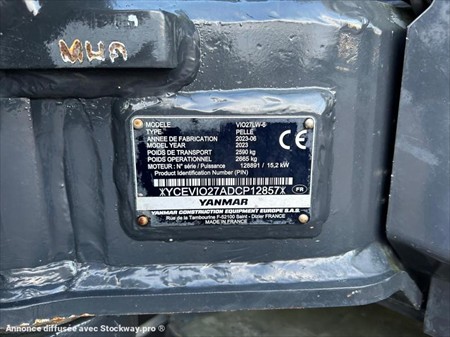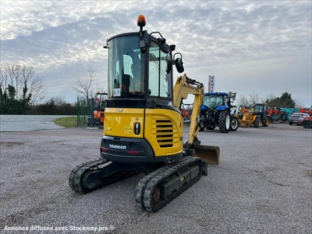 Yanmar VIO27 LW Numéro de stock : 7852 Marque : Yanmar Modèle : VIO27 Année : 2023 Heures : 527h Numéro de série : YCEVIO27ADCP12857 Poids : 2665kg Hauteur : 2m53 Largeur : 1m50 Longueur : 4m60 Chenilles : Caoutchouc Usure chenille droite : 30% Usure chenille gauche : 30% Nombre de godets : 3 2 Vitesses : Oui Moteur : Yanmar 3 cylindres Accessoires : - Ligne auxiliaire - Attache rapide hydraulique Tarif vendu dans l’état : 31 000€ H.T (TVA à 20% récupérable pour les professionnels) Possibilité de matériel vendu révisé, vidangé et garantie pour un supplément de 2 000€ HT. Nous sommes une entreprise multimarques spécialisée dans le négoce de matériels TP et Agricoles dans les Deux-Sèvres. Une large gamme de produits est disponible sur notre parc : Mini pelle, chariot télescopique, dumper, remorques et autres matériels divers. Nous pouvons assurer des livraisons dans toute la France.