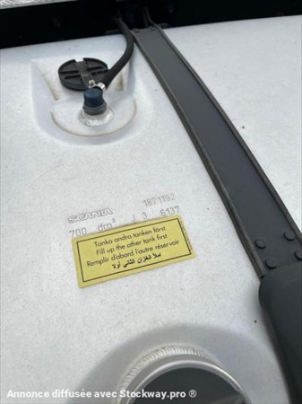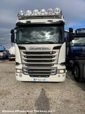 TRACTEUR SCANIA R 480 HIGH LINE EURO6 BOITE AUTOMATIQUE RETARDER CLIMATISATION CHAUFFAGE DEFLECTEUR CARRENAGE 2 RSERVOIRS : 500L // 700L BLOCAGE DIFFERENTIEL ORDINATEUR DE BORD 2 COUCHETTES GPS FRIGO BICOOL SUSPENSIONS LAMES AVANT ET SUSPENSIONS AIR ARRIERE IMMAT : DF 522 CV AN : 22/04/2014 KMS : 1015813 CHASSIS : YS2R4X20009179340 MINES : 17/04/2026 DOSSIER : 5974 PHOTOS : VEHICULE VISIBLE A SAVIM 165 CHEMIN DU GUIGONNET 13270 FOS SUR MER TARIF HT : SUR DEMANDE