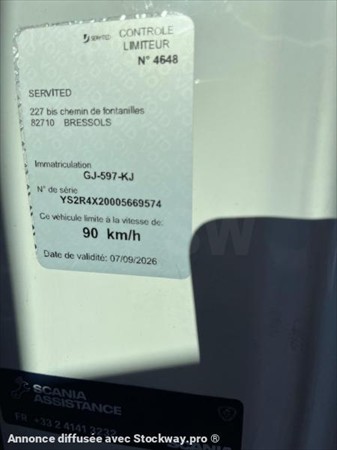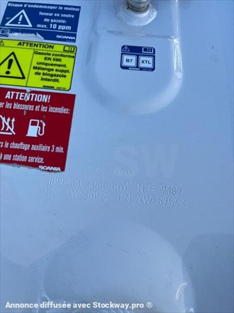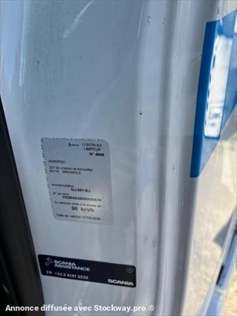 TRACTEUR SCANIA R 500 EURO6 BOITE AUTOMATIQUE RETARDER CLIMATISATION CHAUFFAGE DEFLECTEUR CARRENAGE CLIMATISATION DE NUIT 2 RSERVOIRS : 1000L // 500L BLOCAGE DIFFERENTIEL ORDINATEUR DE BORD 2 COUCHETTES GPS FRIGO BATTERIE A L ARRIERE VISIERE SUSPENSIONS LAMES AVANT ET SUSPENSIONS AIR ARRIERE IMMAT : GJ 597 KJ AN : 14/09/2022 KMS : 558629 KMS CHASSIS : YS2R4X20005669574 MINES : 07/09/2026 DOSSIER : PHOTOS : VEHICULE VISIBLE A SAVIM 165 CHEMIN DU GUIGONNET 13270 FOS SUR MER TARIF HT : SUR DEMANDE