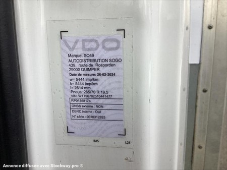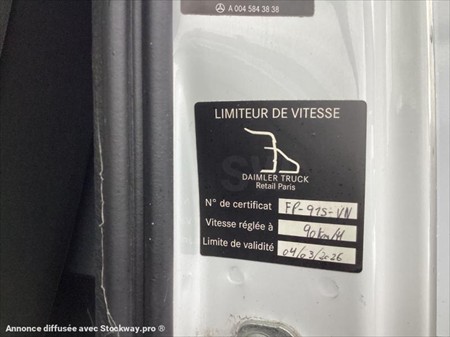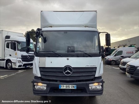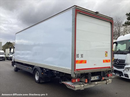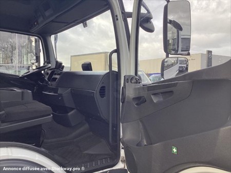 Équipement principaux : Pack électrique, climatisation, caméra de recul, active brake assist, assistant de trajectoire, toit ouvrant, cabine 2 places, porte latérale coulissante, siège à suspension, boîte automatique, suspension AR pneumatique, Euro 6, hayon DHOLLANDIA 1 500 Kg, rideau AR FIT électrique, Description détaillée : Le Mercedes-Benz Atego est un camion fiable et robuste, parfaitement adapte pour le transport de marchandises en zone urbaine ou régionale. Son moteur Euro 6 permet de concilier performance et respect des normes environnementales le hayon élévateur intégré facilite le chargement et déchargement, tandis que la cabine spacieuse et les technologies embarquées garantissent un confort de conduite optimal. Livré toutes visites et entretiens à jour. Largeur intérieure de la caisse = 2.50 m Longueur intérieure de la caisse = 8.30 m Hauteur intérieure de la caisse = 2.50 m