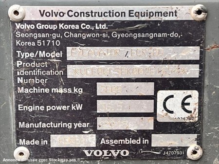 Mini-pelle à chenille 6T Volvo ECR58D N° de série : VCE00C58K00281654 Année 2018 - 7180 heures évolutives 3 Godets : curage + terrassement + tranchée Attache rapide hydraulique VTN Ligne auxiliaire Lame frontale Chauffage + Climatisation Moteur VOLVO D2.6A 2620cm³ 4 cylindres 36,5kW / 50cv Dimensions : L 5,55m x l 2m x H 2,62m Poids 5808Kg Lors de sa réception, un employé qualifié de DB EQUIPMENT a effectué un contrôle des éléments essentiels du matériel, et a pu constater : son bon fonctionnement général, chenilles 60% usures, dents de barbotins en bon état. Ce matériel est disponible sur parc, et peut être essayé sur nos horaires d'ouverture sur simple rendez-vous. REPRISE ET LIVRAISON POSSIBLE Nous nous efforçons de publier des informations les plus précises possibles mais aucun droit ne peut être tiré des textes publiés.