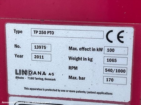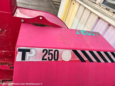 Broyeur à branche arrière tracteur FSI TP250PTO (NET DE TVA) N° de série : 13975 Année 2011 No stress TP Pilot Déchiqueteuse à disque Diamètre max du bois : 250mm Ouverture du rouleau : 260 x 350mm Puissance tracteur requise : de 60 à 150cv Suspension 3 points Cat. 2 Capacité : 50m³/heure Taille des copeaux en sortie réglable de 4 à 13mm 2 Rouleaux d'alimentation horizontaux 3 Couteaux + 3 contre-couteaux Diamètre du disque : 96mm Transmission à cardan 6 cannelures Dimensions : L 1,98 x l 1536 x H 2942mm Poids 1065Kg Lors de sa réception, un employé qualifié de DB EQUIPMENT a effectué un contrôle des éléments essentiels du matériel, et a pu constater : son bon fonctionnement général. Ce matériel est disponible sur parc, et peut être essayé sur nos horaires d'ouverture sur simple rendez-vous. REPRISE ET LIVRAISON POSSIBLE Nous nous efforçons de publier des informations les plus précises possibles mais aucun droit ne peut être tiré des textes publiés.
