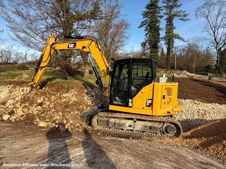 Mini-pelle CATERPILLAR 308CR Année : 2019 Heures : 5000 Poids : 9 t - Largeur : 2300 mm Moteur Caterpillar C3.3B (52.4 kW) Lame Lignes hydrauliques Coupleur hydraulique Godets de tranchée, terrassement et curage inclinable